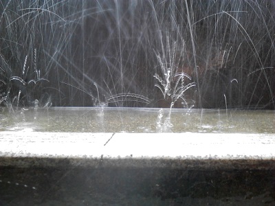 傘がひっくり返ってもあきらめずさしつづける人、ひっくり返らないよう傘を半分だけひろげて進む人、あきらめて雨宿りする人、臆せず手ぶらでどうどうと歩く人、中腰で傘をさしアヒル歩きで進む人。ひとそれぞれ。