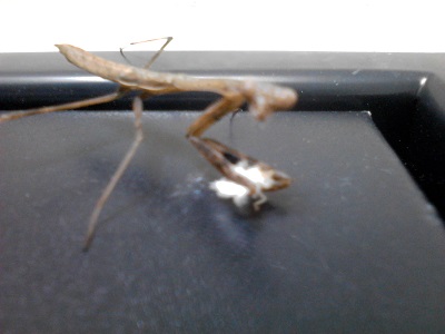 ジッとこちらを睨む蛾を捕獲したてのカマキリっ !