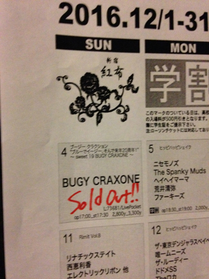 新宿red cloth ブージー クラクション "ブルーでイージー、そんで来年20周年!" 〜 sweet 19 BUGY CRAXONE 〜 の様子がGalleryで観られます。 http://www.bugycraxone.com/gallery/