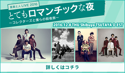 音楽と人主催「とてもロマンチックな夜〜コレクターズと僕らの前夜祭〜」を観に渋谷へ。出演はCasablanca、SCOOBIE DO、バンドTOMOVSKY、THE COLLECTORS。ようやく観れたCasablanca。あんまり気づかれてないようだけどさわおさんのギターのリズム感ってすごい。とにもかくにもバンドが豪華でおなかいっぱい♪