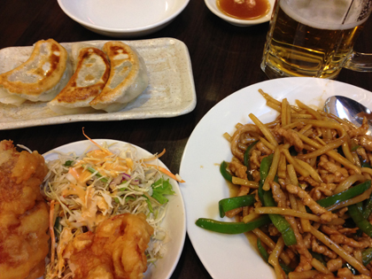 リハ終わりで忘年会まで時間があったので近所の中華で晩酌セット。きてみてびっくり夕食でも多いわっ!!!ってくらいのボリューム。