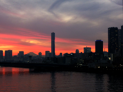 きれいな夕焼け。ひだり奥に富士山。