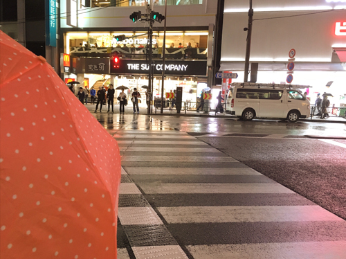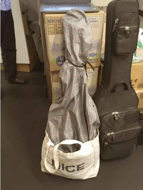 アコギのケースが行方不明だったので雨ガッパでかくして地下鉄へ。