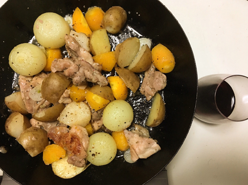 遠軽の友人が送ってくれた小玉ねぎや小さいおじゃがをゆっくりじっくり焼いてフライパンのままテーブルへ。キャンプフィーリング。ワインもうまし。