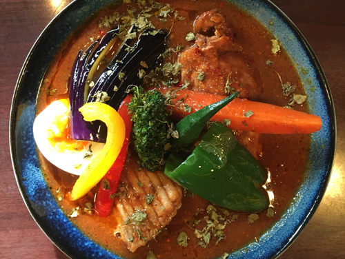 きのうは おなじみニューチェックでチキンと野菜のカレー。1日分の野菜をとれるんじゃね?ぐらいの大ボリューム、激うま。試作中のカスベをトッピングしてもらいました。これまた激うま。辛さは550。汗だくでおいしくいただきました。