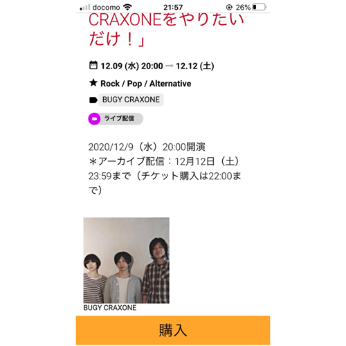 BUGY CRAXONE無観客生配信ライブ