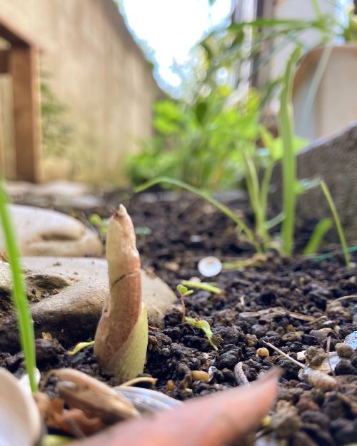越冬できず、枯れたと思っていたアボカドから新芽が。春です。